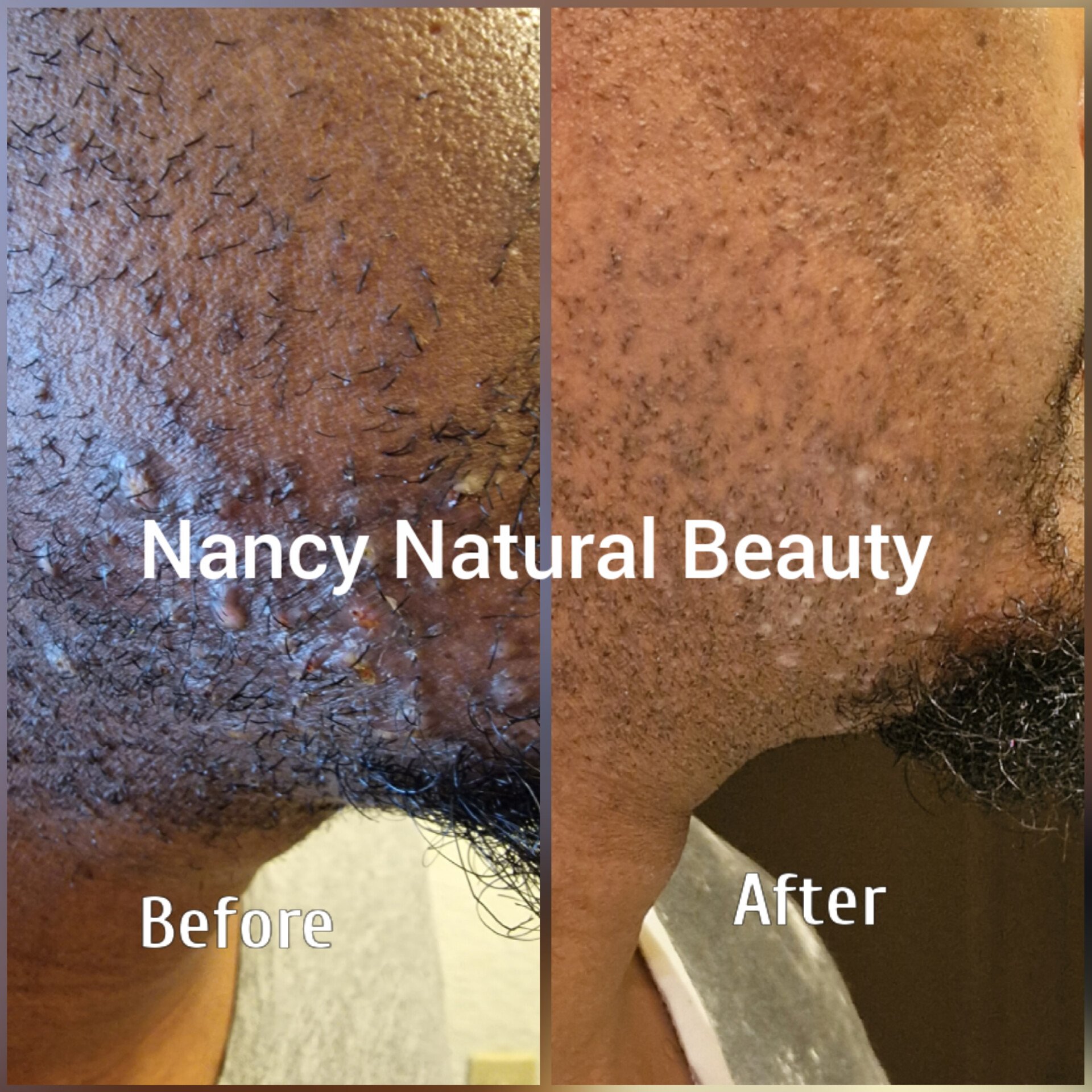 is an inflammatory reaction to ingrown hair that results most commonly from improper shaving technique. Sharply cut curly hairs can re-enter the skin and cause painful, inflamed bumps. Although more prevalent in African American men (possible genetic predisposition), it can happen in all men, especially those with curly hair. When long-lasting, there can be resultant scarring, hair loss, or pigmentary changes.