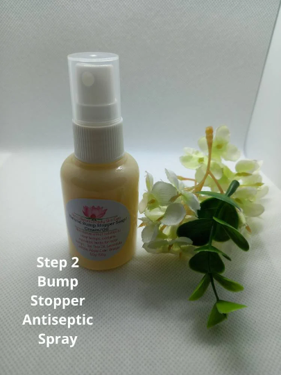 Natural Bump Stopper Antiseptic Spray (Step 2) : help to flush the follicle, kill bacteria, and speed healing.